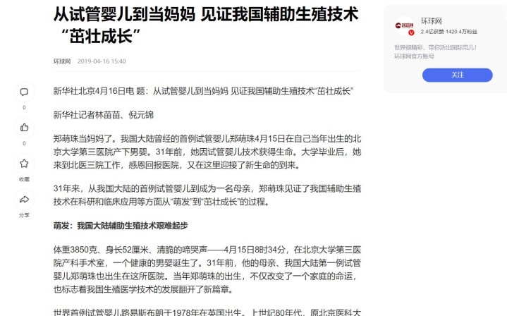 如今,很多无法正常生育的夫妻,也在郑萌珠的存在和鼓励下,踏上了试管婴儿的道路。